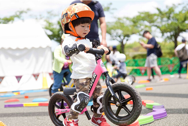 アドベンチャーゾーン(ストライダー試乗体験)は、主に未経験者(1歳半~5歳くらい)を対象とした試乗体験イベント! コース内にはカラフルなトンネルやストーンなど子どもの好奇心をくすぐる障害物を設置。
