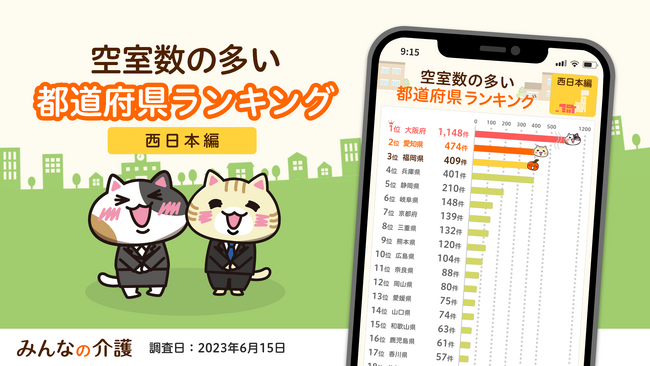 掲載施設数No.1(※)の⽼人ホーム検索サイト「みんなの介護」を運営する株式会社クーリエ(本社:東京都渋谷区、代表取締役 安田 大作)では、サイト運営で得た知見を基に介護事業の課題や社会的事象を調査・研究しています。今回は「みんなの介護」に掲載している施設の空室情報をもとに、空室数の多い都道府県ランキング<西日本編>をお届けします。