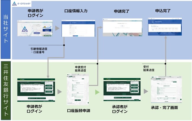 今般、三井住友銀行が提供している「インターネット口座振替契約受付サービス(法人版)」を活用し、SMFLが提供している契約先向け専用Webサイト「e-answer」を連携することで、三井住友銀行の口座で口座振替契約をする際に、「e-answer」からの申し込みが可能になりました。口座振替の申請や申込内容の確認をWebサイトで実施することにより、速やかに口座振替を開始することが可能になります。また、リース契約と合わせて口座振替契約を電子化対応することで、ペーパーレス・印鑑不要による契約手続きが実現します。