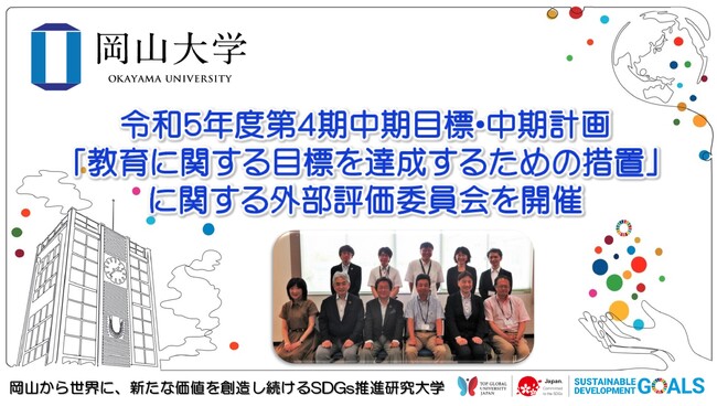 国立大学法人岡山大学(本部:岡山市北区、学長:那須保友)は、第4期中期目標・中期計画に掲げる「教育に関する目標」の達成に向けた令和5年度外部評価委員会を、2023年6月24日に岡山大学津島キャンパスの一般教育棟で開催しました。