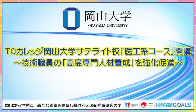 【岡山大学】TCカレッジ岡山大学サテライト校「医工系コース」開講 ~技術職員の「高度専門人材養成」を強化促進~