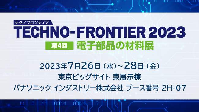 パナソニック インダストリー株式会社(以下、当社)は、2023年7月26日(水)から7月28日(金)まで東京ビッグサイトで開催される「TECHNO-FRONTIER 2023」に出展します。