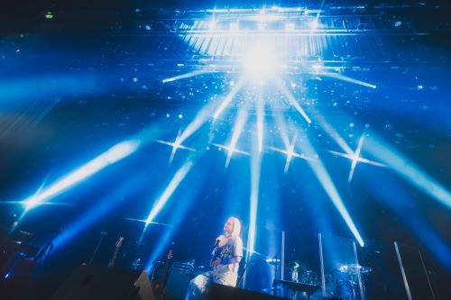 ここで再びバンドメンバーをステージに迎え入れ、いよいよライブはクライマックスへ。「Angel voice」では、荘厳で神秘的なシンフォニックサウンドに乗せて、まさに天使のような清廉な歌声を届け、「ここが時代の最先端でしょ!」「時代がこれからついてくるよ!」と力強い言葉と共に披露した「KAKKOII」では、自ら両手をバウンスさせながら観客と熱烈なコミュニケーションを繰り広げていく。疾走感に満ちた直球のロックナンバー「CRAZY WORLD」では、轟音のバンドサウンドに負けない力強い歌声を通して鮮烈なロックバイブスを共有し、一転して、カラフルなポップチューン「Not Alone」では、両手で手拍子を煽りながらチアフルなムードを作り上げていく。〈朝日が昇るまで〉に続く歌詞を〈渋谷で〉と替えて歌う一幕もあり、会場の一体感と高揚感がさらに一段と高まる。重厚な4つ打ちのビートに乗せて、その曲名のとおり力強いメッセージを歌い届けた「We'll Never Die」も圧巻だった。