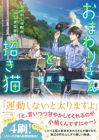 『おまわりさんと招き猫 あやかしの町のふしぎな日常』めでたく4刷重版ですにゃ!!しゃべる猫と新米おまわりさんが織りなす、海辺の町のふしぎな物語