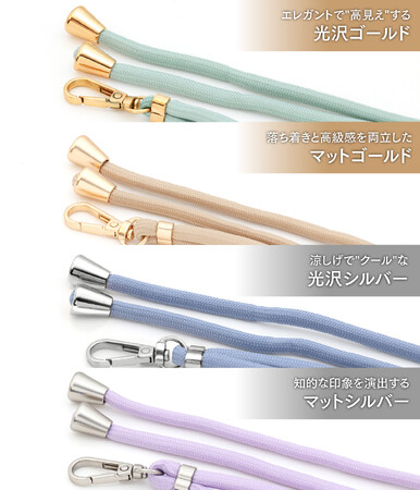 【工場出荷数4万本突破】結びアレンジが人気のスマホ ショルダー「OTOMOストラップ」にマットゴールド&マットシルバー金具が登場。肩掛け斜め掛けしても痛くない太目の紐と上品な金具で高見え効果抜群!