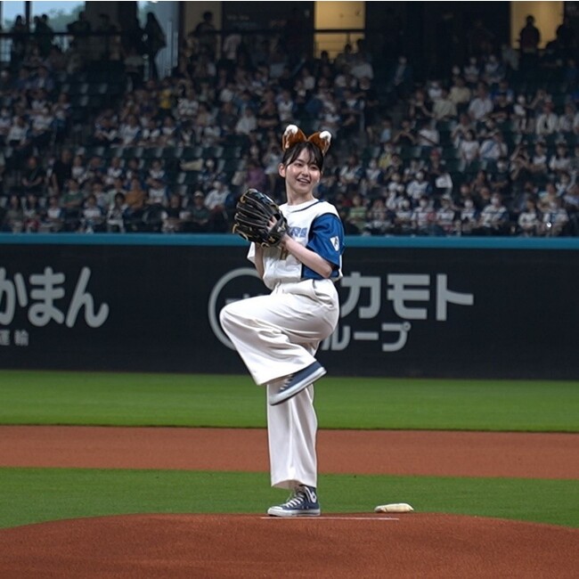 ファーストピッチセレモニーでは、試合当日の2023年6月30日より北海道地区で放映が開始されたTVCM「スポーツソリューション エスコンフィールドHOKKAIDO」篇に出演している女優の山田杏奈さんが登場。昨年実施された「パナソニック エコナイター」以来、2度目となるファーストピッチセレモニーでの投球に挑戦し、会場を盛り上げました。