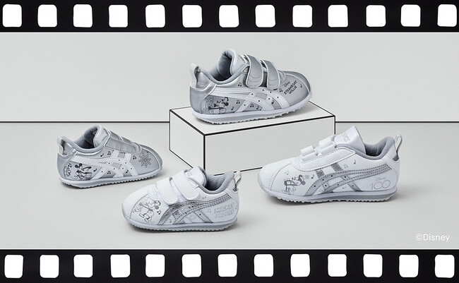 アシックスジャパンは、子ども靴のシリーズ「SUKU²(スクスク)」から、『蒸気船ウィリー』の「ミッキーマウス」と「ミニーマウス」をモチーフにデザインした「Disneyコレクション/DISNEY100」を、7月5日からアシックスオンラインストアで先行発売し、7月12日からアシックスキッズ銀座、アシックスキッズグランフロント大阪、アシックスウォーキング直営店の一部店舗、全国の百貨店、靴店などで順次発売します。