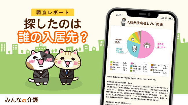 掲載施設数No.1(※1)の⽼人ホーム検索サイト「みんなの介護」を運営する株式会社クーリエ(本社:東京都渋谷区、代表取締役 安田 大作)は、入居決定者向けのアンケート結果を集計し、回答者と入居決定者の関係性を調査しました。