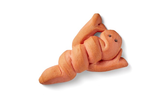 ザリガニフェアには欠かせない、がんばれザリガニくんが今年も登場。シナモンロールの生地を使った、かわいいねじりパンです。