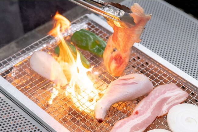 焼く人だけが立って焼くのではなく、座りながら皆で焼いて食べることができる焼き台付きテーブルを