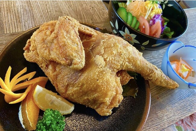 国産鶏の半身を丸揚げした名物「鳥山からあげ」は、カラッと香ばしく揚がるのが魅力で、食べても胸焼けしないのが特徴です。旨味たっぷりで遠方からもこれを目当てに来られるお客様もいらっしゃるほどの人気メニューです。