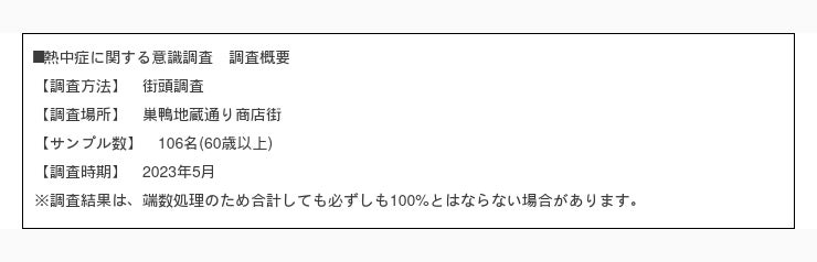 60代以上の100人に聞いた「熱中症意識調査」の結果を発表