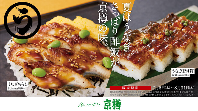 株式会社 京樽(本社:東京都中央区、代表取締役社長:堀江 陽)は、お持ち帰り鮨専門店「京樽」でうなぎを使ったおすすめの商品を、期間限定で販売いたします。