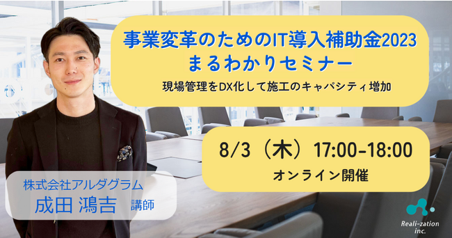 ぜひとも株式会社リアリゼイションが開催する「事業変革のためのIT導入補助金2023まるわかりセミナー-現場管理をDX化して施工のキャパシティ増加-」