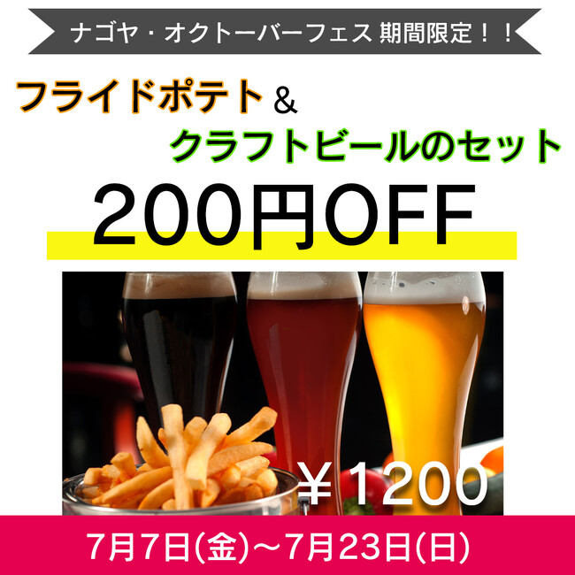 ドイツビールの祭典『名古屋オクトーバーフェスト2023』が7月7日より栄・久屋大通公園にて開催!イベントに伴いELOISE’s Cafe名古屋久屋大通公園店(運営:株式会社RAVIPA 本社:東京都豊島区)では、クラフトビールとフライドポテトのセット販売を開始いたします。オクトーバーフェスト開催期間中は通常価格より200円OFFの1200円でご提供いたします!
