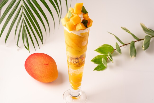フィルター越しの映えは間違いなし、インパクトがありながらも飽きずにペロリと完食できるパフェをテーマに、ジューシーな完熟マンゴー、濃厚なマンゴーアイス、口溶けのいいマンゴームースやアクセントになるタピオカを使用し、マンゴー好きにはたまらないビタミンカラーの映えるパフェに仕上げました。