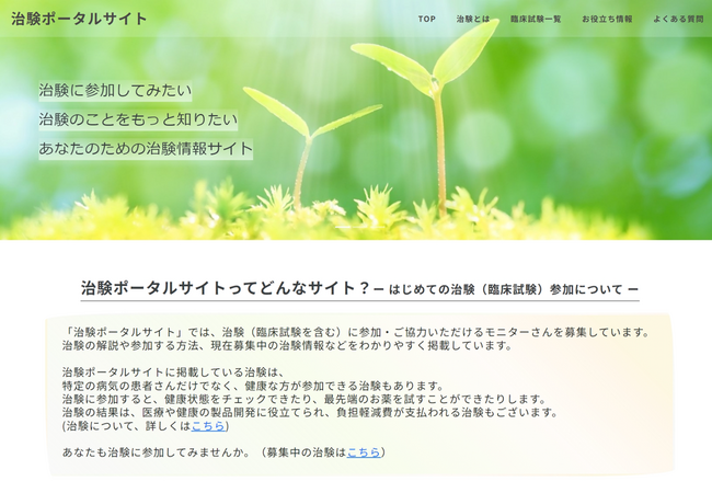 ※随時、治験情報公開や被験者募集などコンテンツを更新予定。