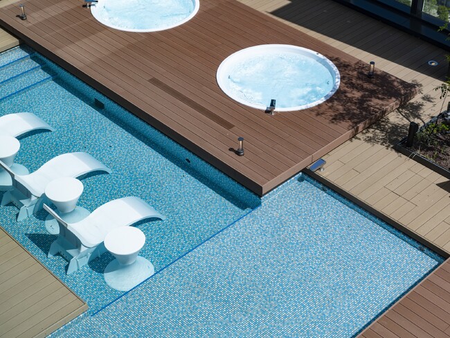 ホテルのアイコニックとも言えるスカイプール「sky pool LA MAGNOLIA(スカイプール ラ マグノリア)」は、三井ガーデンホテルズとして初の設置となるプールで、屋内(全長8.6m、深さ1.2m)・屋外(全長9m、深さ0.5m)の2ヶ所にあり、屋外にはジェットバスも設置されています。プールサイドでは、リトリートのひと時として、バーからドリンク類をご提供します。このスカイプールを自分だけの時間としてお過ごしいただける日中貸切プランを1日1組限定でご用意いたします。