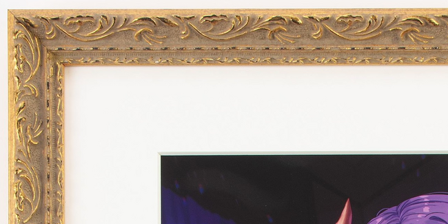 ⇒レアリュクスのオーダーメードフレームは品格と風合いを感じさせるゴールドのヴィンテージ仕上げです。控えめながら施された装飾がイラストをより引き立てます。