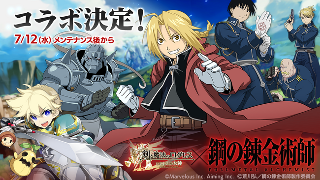 株式会社マーベラス(代表取締役社長:佐藤 澄宣/所在地:東京都品川区)は、スマートフォン向け本格オンラインRPG『剣と魔法のログレス いにしえの女神』において、2023/7/12(水)から「ログレス」×アニメ「鋼の錬金術師 FULLMETAL ALCHEMIST」コラボを開催することをお知らせいたします。