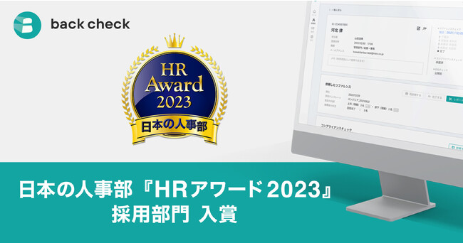株式会社ROXX(本社:東京都新宿区、代表取締役:中嶋汰朗)は、当社が開発・運営するオンライン完結型のリファレンス/コンプライアンスチェックサービス『back check』が、厚生労働省後援 日本の人事部『HRアワード2023』の採用部門において入賞したことをお知らせいたします。
