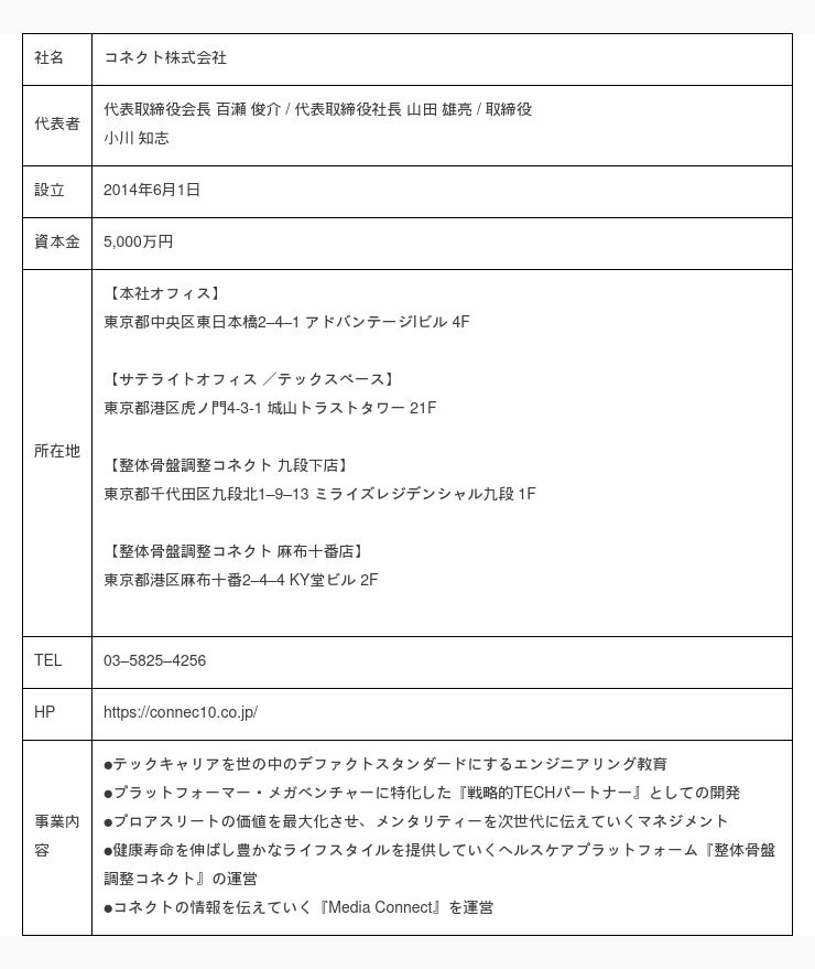 システム受託開発・コンサルティングを主に、アスリート・文化人のマネジメント、整体サロンの運営、オウンドメディア『media CONNECT』の発信をするコネクト株式会社 (本社 : 東京都中央区 / 代表取締役会長 : 百瀬 俊介・代表取締役 : 山田雄亮・取締役 : 小川 知志 以下当社)は、2023年7月13日(木)神谷町トラストタワーにて行われる「エンジニア合同説明会&フリー交流イベント(WeWork主催)」に参加することをご報告いたします。