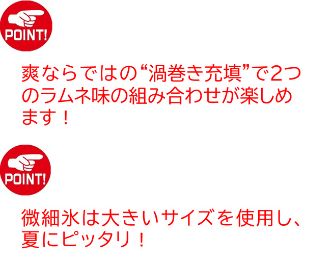 食べた瞬間に感じるアイスの満足できる味わいと、微細氷が織りなすすっと溶けるくちどけが楽しめます。