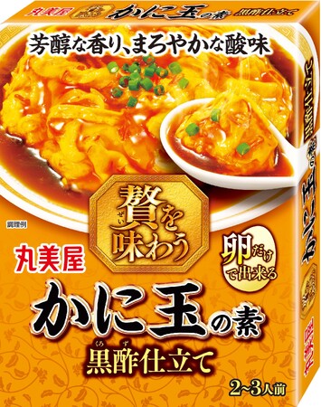 丸美屋食品工業株式会社(本社:東京都杉並区、社長:阿部豊太郎)は、「贅を味わう」シリーズから「贅を味わう かに玉の素<黒酢仕立て>」を、2023年8月24日(木)に新発売いたします。
