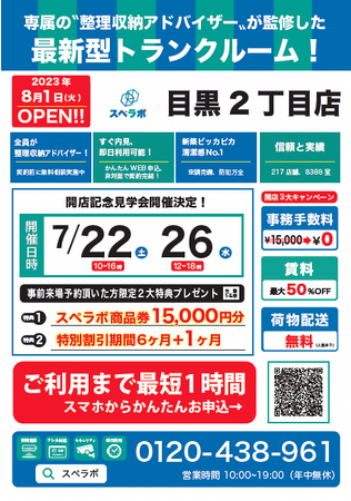 オープンに合わせ7月22日(土)、26日(水)に見学会を実施しますので、ぜひ【スペラボ・目黒2丁目店】にお越しくださいませ。