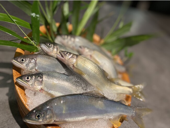 この夏、旅館ぬしやでは江津市を流れる江の川の清流で養殖された新鮮な鮎を主役にした料理を提供します。江の川は水質の良さからオオサンショウウオも生息する川で中国地方最大の河川です。低水温15℃~18℃で育てられており、天然に近く香りがよく、肉厚で旨味に富んでいます。直送により新鮮な状態でお客様に提供しております。