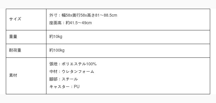 脚部は清潔感あるホワイト脚となっており、キャスターも脚部と同じホワイトで統一されております。モノトーンのお部屋にはもちろん、ナチュラルテイストのお部屋などにも合わせやすいです。