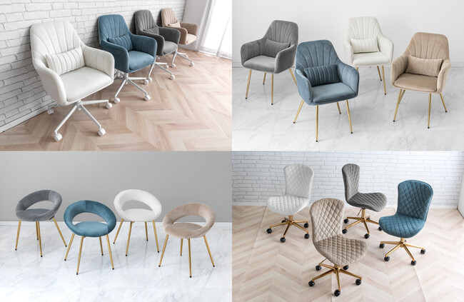 タンスのゲンより32種類ものバリエーションの”ベロア調くすみカラーチェア”を発売開始。8つのモデル×4カラーからお持ちのデスクやドレッサーに合うデザインがきっと見つかる!!
