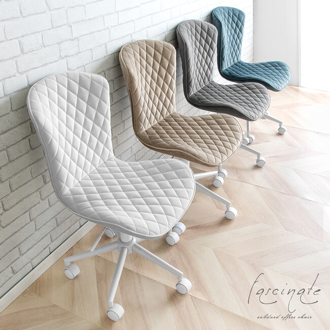 キャスターまでホワイトになっており、くすみカラー×ホワイトの落ち着いた雰囲気で統一感のある美しいチェアとなっています。