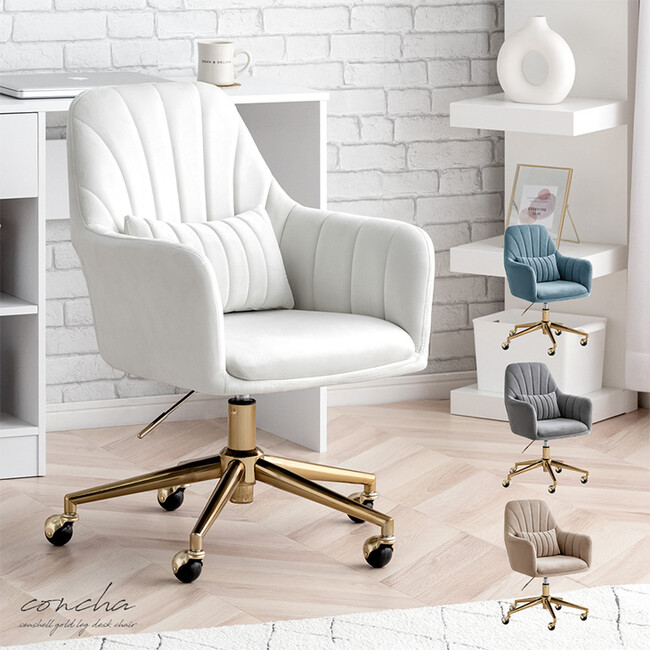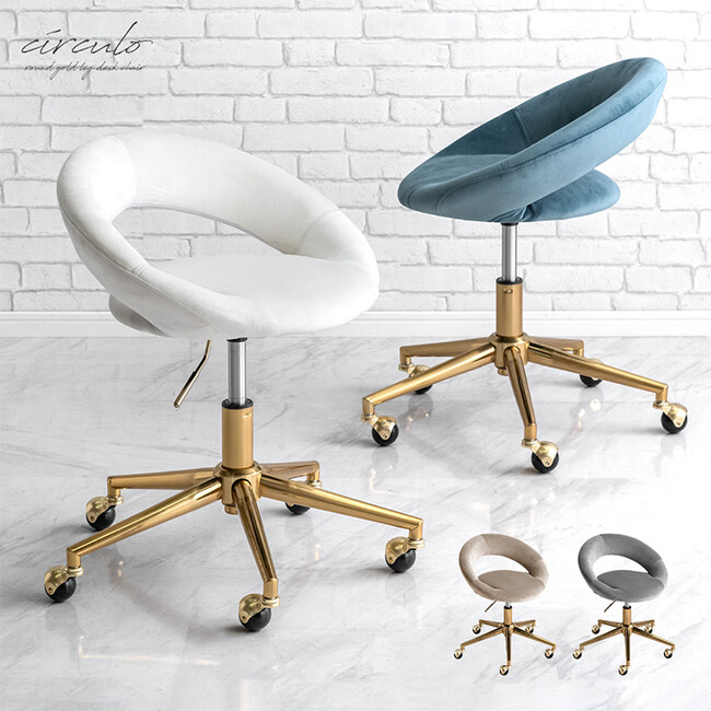 キャスター付きのゴールド脚からは華やかでエレガントな印象を感じることができ、ワークスペースを上品で優雅な空間に一変させます。