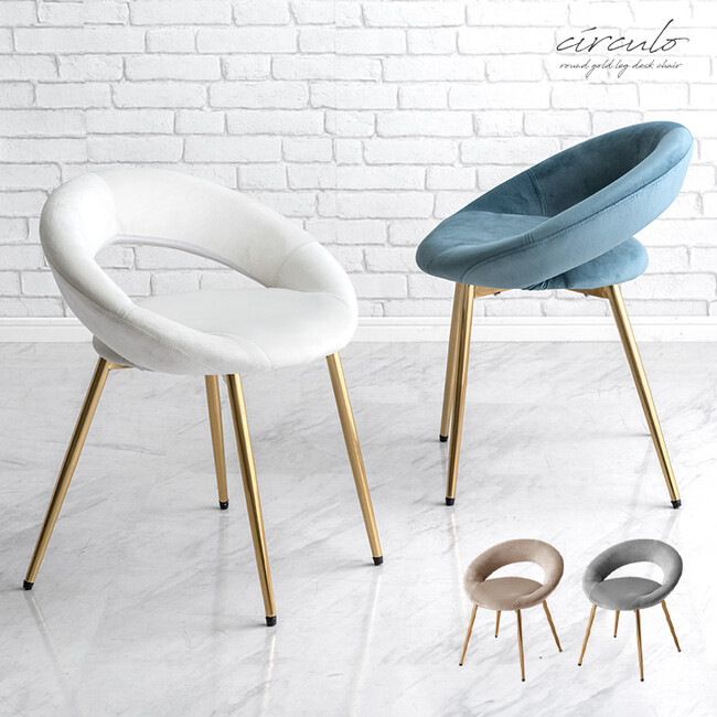 6. くすみカラーチェア 円形デザイン ゴールド4本脚