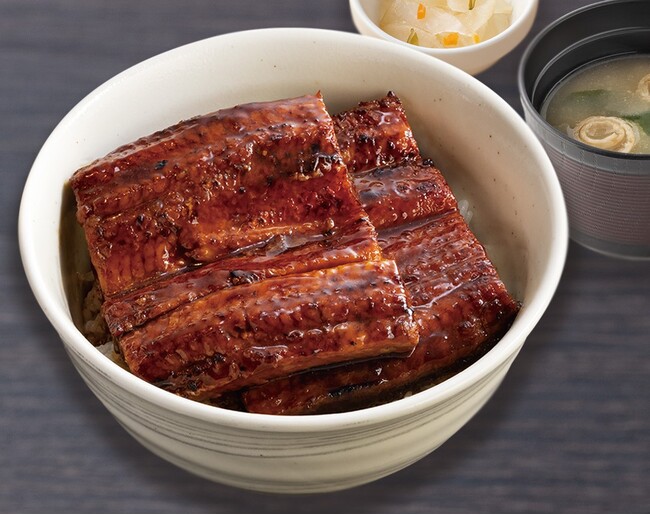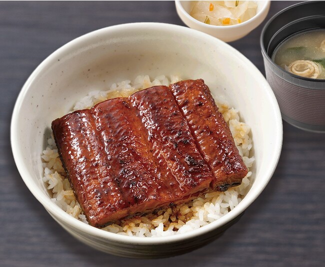 脂がのった“うなぎ”をじっくり四度焼きすることで、ふっくらとやわらかく、ほどよく香ばしさを残し、甘すぎずキレのある焼きダレと相性抜群。店内飲食では「うな丼」に味噌汁と漬物が付いて税込1,250円。また、「うなぎ弁当」をテイクアウトは税込1,150円、宅配は税込1,240円でご予約も受け付けております。
