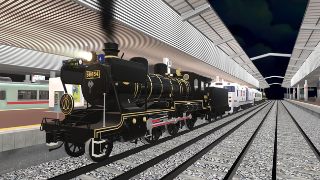 JR九州が運行するD&S列車(観光列車)の中から、「SL人吉」、「ふたつ星4047」、「あそぼーい!」、「ゆふいんの森」の4つの列車を組み合わせて、ここでしか見ることができない列車をご用意しました。現実では運行していない、ありえない編成の列車をバーチャル博多駅でお楽しみください!