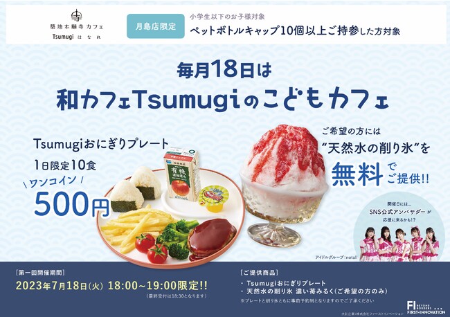株式会社プロントコーポレーション(本社:東京都港区、代表取締役社長:杉山和弘)は、和カフェ Tsumugi(ツムギ)『築地本願寺カフェ Tsumugi はなれ 月島店』(以下Tsumugi月島店) にて「こどもカフェ」を開催いたします。