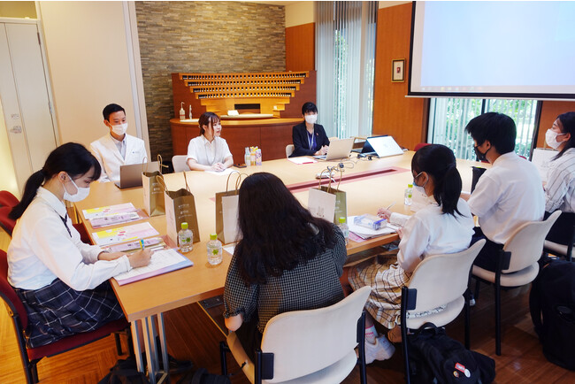 化粧品が出来るまでの各工程や役割の解説や、生徒と当社社員とのディスカッション、研究所見学等を通じて“働くこと”を学び、考え、理解を深める機会を提供することで、グローバルな人財育成に貢献したいとの想いで2018年より毎年受け入れを実施し、今年で6年目となります。