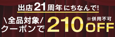 楽天出店21周年にちなんで、全品対象の210円OFFクーポンを配布いたします。