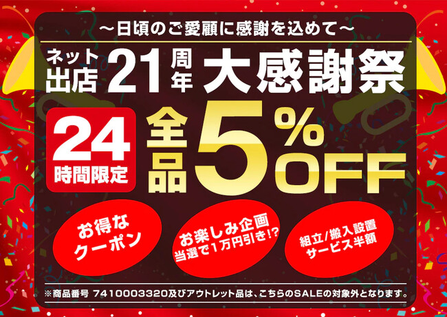 タンスのゲンの自社運営ショップ「タンスのゲン本店」でもネット出店21周年を記念してお得なイベントを開催いたします。