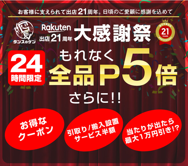 【タンスのゲン】7月15日で楽天市場出店21周年へ!記念して楽天市場店でお得なイベントを開催!