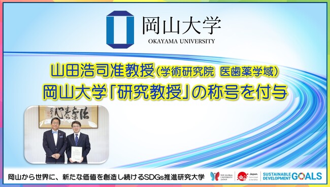 【岡山大学】山田浩司准教授に岡山大学「研究教授」の称号を付与しました