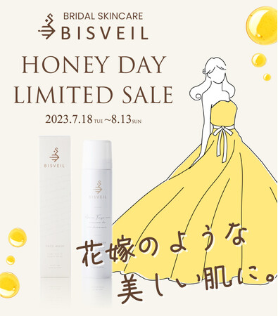 結婚式前の花嫁が愛用するはちみつを配合したブライダルスキンケアブランド「BISVEIL」が、2023年7月18日よりプレゼントキャンペーンを実施。プレゼントキャンペーンに合わせて、大人気商品「BISVEIL 泡ミツ洗顔」をお得にお使いいただけるはちみつの日限定セットを販売いたします。
