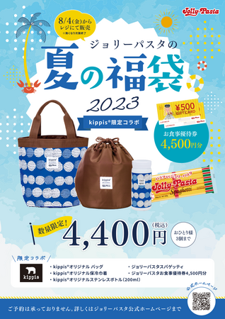 【ジョリーパスタ】「ジョリーパスタの夏の福袋2023」販売決定!ジョリーパスタとkippis(R)がコラボした夏の福袋を8月4日(金)より店頭にて販売!