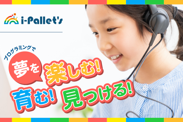 i-Pallet'sは、プログラミング的思考の育成から本格的なプログラミング言語を用いた開発まで学べる、小学生・子ども向けプログラミング教室です。