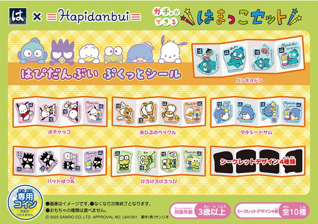 【はま寿司】はまっこセットのおもちゃに「はぴだんぶい ぷくっとシール」が登場キュートなキャラクターが描かれた全10種のシールを集めよう!