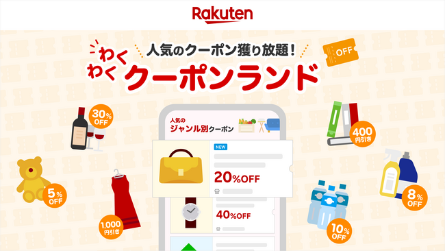 楽天、「人気のクーポン獲り放題!わくわくクーポンランド」の本格提供を開始