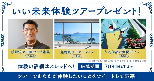 「絶景ワーケーション体験」「槙野智章さんによる特別講義」 「TVアニメ『シャングリラ・フロンティア』の声優体験」をプレゼント!