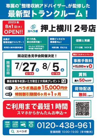 【押上横川2号店/8月1日(火)オープン】見学から契約、解約まで完全非接触・非対面、お申し込みからご利用まで最短1時間!都内、大阪などにて絶賛運営中のトランクルーム【スペラボ】が押上駅近くに出店!